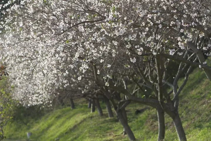"Shikizakura, or ""four-season cherry blossoms,"" bloom twice a year — in spring and autumn. At Daikō-ji Temple, about 500 Shikizakura trees have been planted along both banks of the Ochita River and from the hillside observation deck east of the temple down to the parking area. In autumn, the Shikizakura Festival is held, attracting many visitors to enjoy the unique combination of cherry blossoms and autumn leaves."